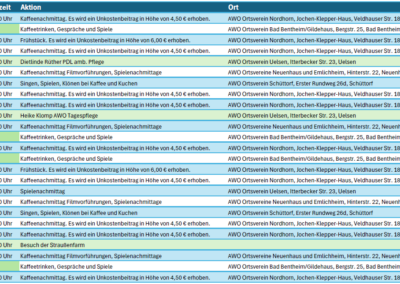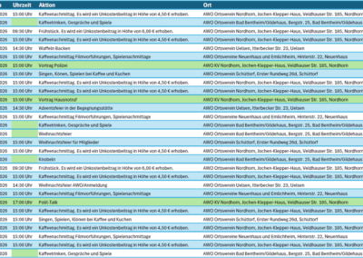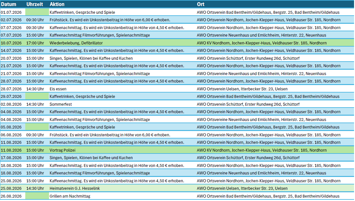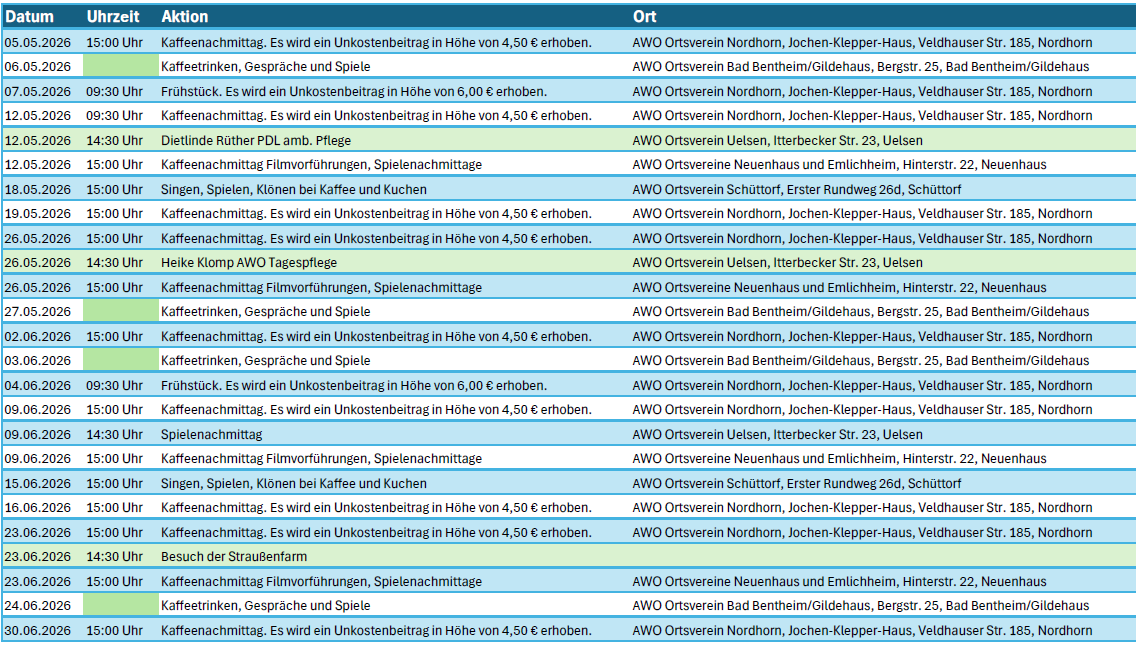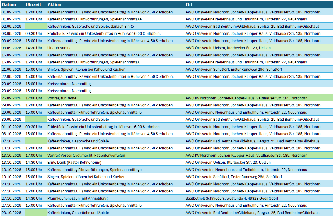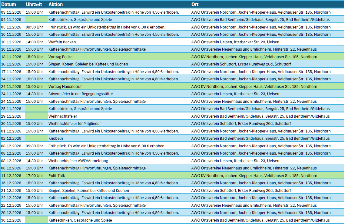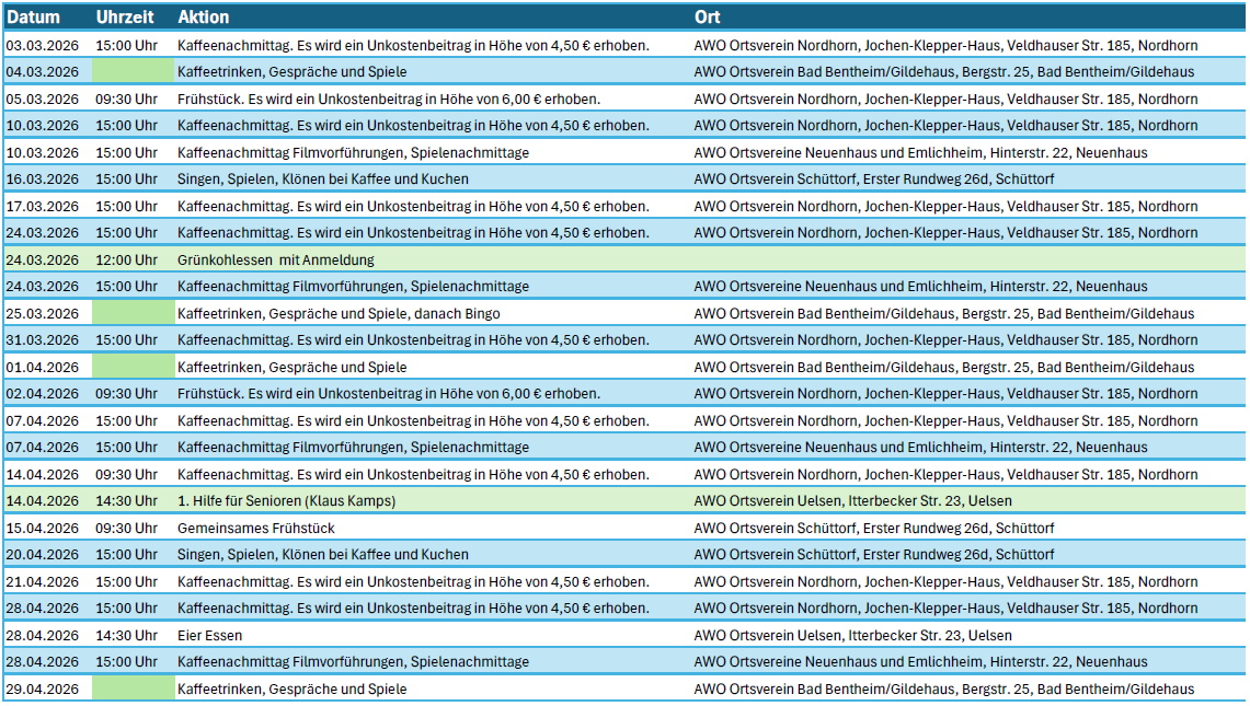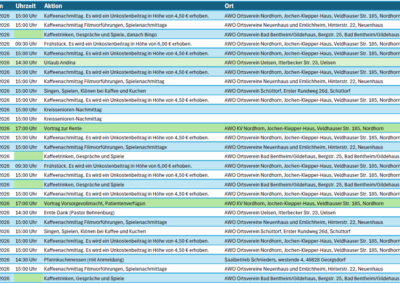 Veranstaltungsübersicht AWO Kreisverband Grafschaft Bentheim e.V. 2026